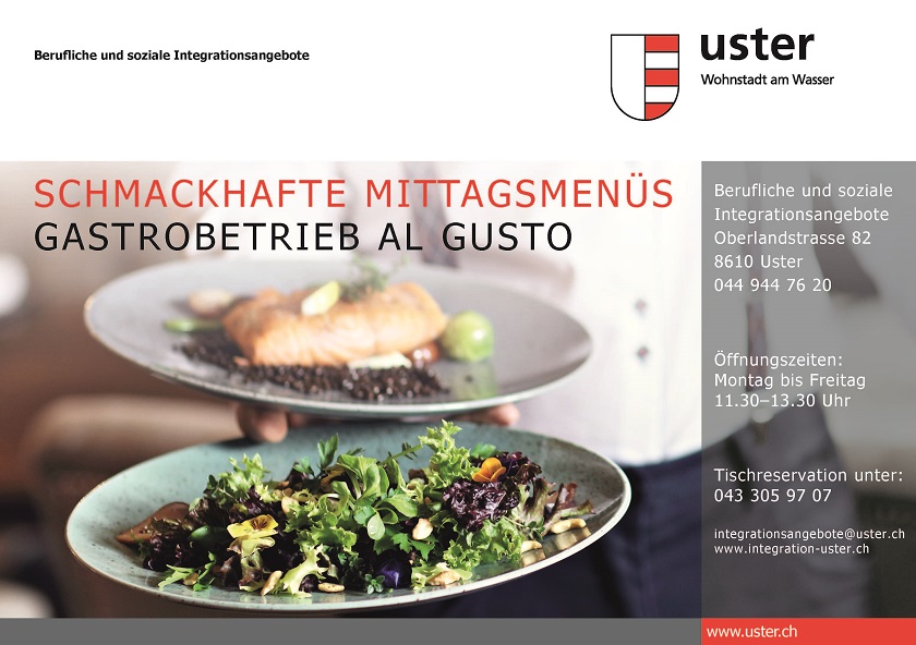 40% auf Menü (Suppe, Salat, Hauptspeise und Dessert) sowie auf Kaffee und Getränke. Normalpreis Fr. 19.–, Jugendliche Fr. 11.–, Kinder Fr. 8.–.